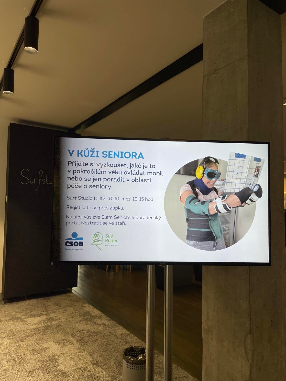 Zaměstnancům banky jsme tak mohli nabídnout možnost alespoň trochu přiblížit, jak stárnutí proměňuje naši fyzickou stránku. Vyzkoušeli si, jaké to je během několika minut zestárnout o několik desítek let. Bylo skvělé, díky gerontoobleku, umožnit nejen vcítění do pocitů a potřeb seniorů, ale nabídnout i jiný způsob uvažování o produktech nebo výrobcích.
