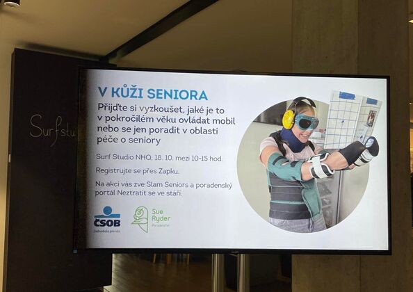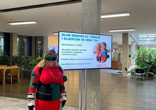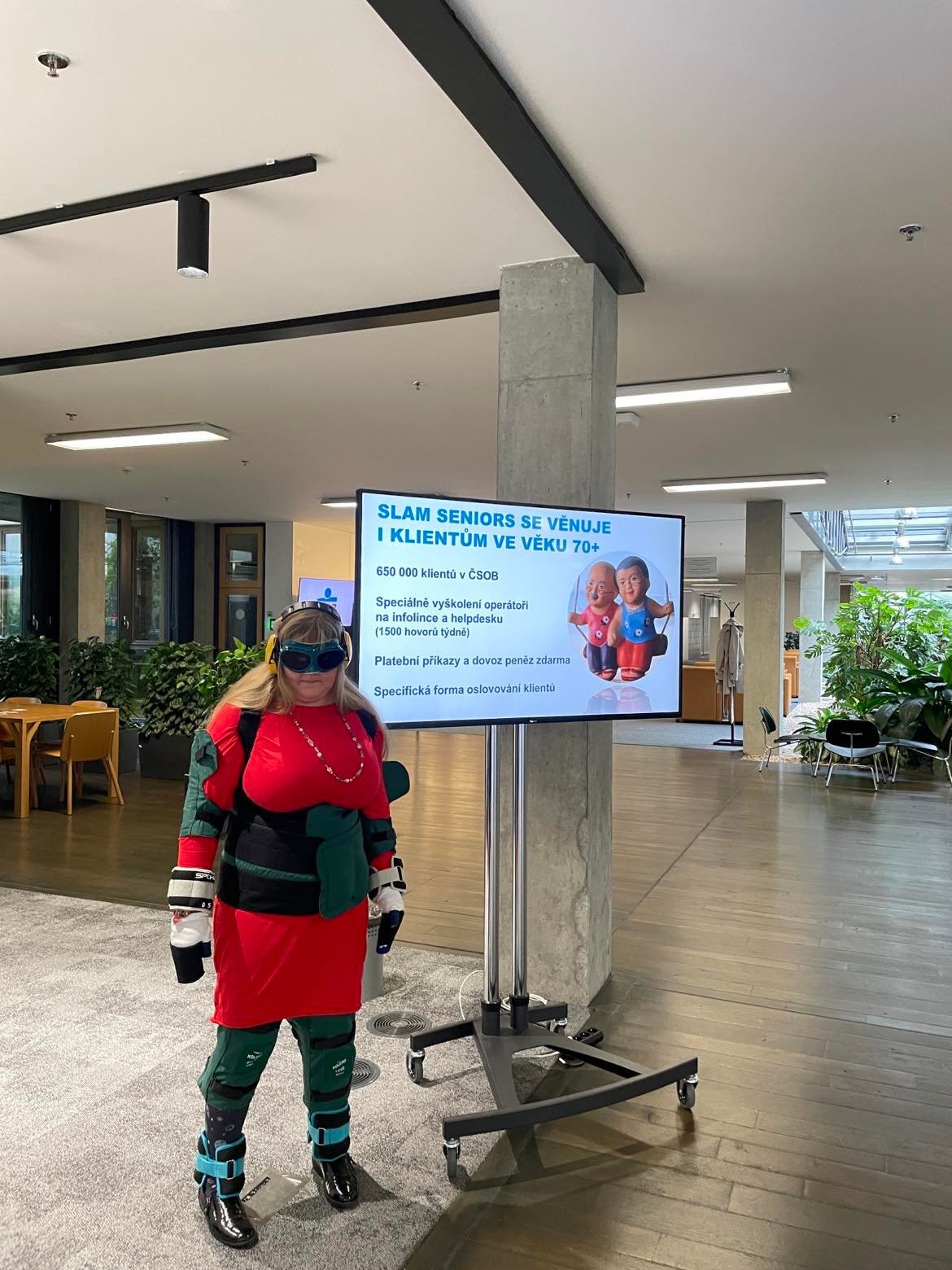Navštívili jsme zaměstnance ČSOB, se kterými jsme si dlouze povídali o stáří, ale hlavně → přinesli jsme s sebou gerontooblek.